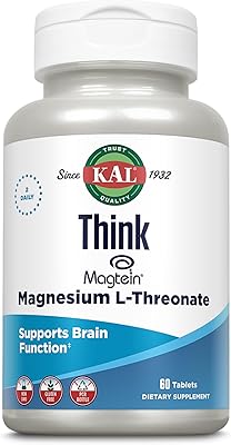 KAL Think Magnesium L-Threonate 2000 mg | Learning, Brain Health & Memory Function Support wMagtein | Vegan, No Gluten & Non-GMO | 60 Tablets